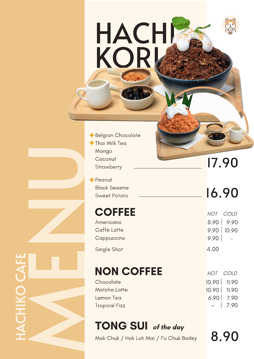 The menu at Hachiko Pet Cafe - Alam Damai offers a variety of food and beverage options suitable for casual dining and coffee breaks. Visitors can find selections that cater to different preferences, including light meals and snacks.